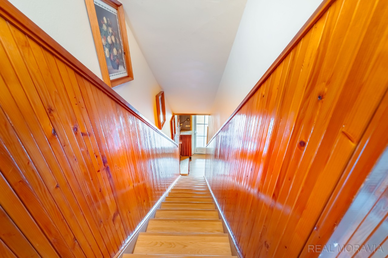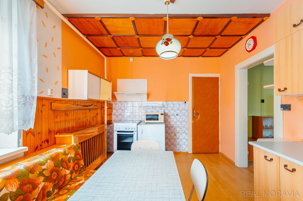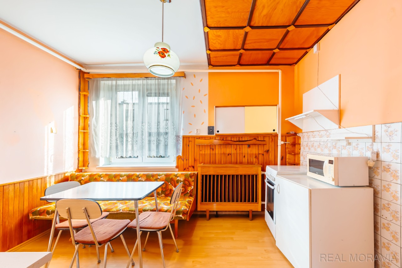 Nabízíme k prodeji prostorný byt 3+1 se zahradou a sklepem v menším cihlovém domě, v osobním vlastnictví, v Lutíně, 8 km od Olomouce. Bytový dům je samostatně stojící se 6 bytovými jednotkami. Každý byt má samostatný vchod z ulice a využívá část pozemku – zahrady. Byt je mezonetový, nachází se v přízemí a 1.patře dvoupodlažního bytového domu bez výtahu a má užitnou plochu 122,5 m² včetně vstupní verandy (2,12 m²) a sklepu v suterénu domu (41,69 m²). Dům byl postaven kolem r. 1940, je podsklepený, má 2 nadzemní podlaží. Dům je zděný a je po částečné revitalizaci: r. 2020 střecha vč. oplechování, r. 2018 nová plastová okna, r. 1986 napojení na plyn. V bytě proběhla výměna plyn. kotle v r. 2012, renovace koupelny a WC r. 2005 (obklady, dlažba, sanita), plovoucí podlaha. Elektro, odpady původní. V bytě se nachází vstupní veranda, předsíň, obývací pokoj, kuchyň s jídelním koutem (plynový sporák s el. troubou, dřez), samostatné WC s oknem, spíž, schodiště do patra. V 1.patře pak 2 průchozí pokoje, koupelna (umyvadlo, vana, místo na pračku, okno). Podlahy- v koupelně a WC dlažba, v obývacím pokoji a kuchyni plovoucí podlaha, v pokojích koberce. Elektroinstalace a vnitřní dveře původní. Dům je napojen na tyto IS – el., plyn, obecní vodovod, obecní kanalizace. Vytápění – ústřední, plynový kotel (vlastní kotelna ve sklepě). Ohřev vody – plynový bojler. Internet optika. V suterénu domu velký sklep (41,69 m²), kde v části je umístěna vlastní kotelna s plynovým kotlem, další část slouží jako úložný prostor. K bytu patří menší oplocená část pozemku, který slouží jako zahrada (cca 84 m²). Na zahradě voda, zásuvka, el. 380. Parkování na pozemku nebo na ploše před pozemkem. Měsíční náklady – 4 390 Kč. Úvěr na revitalizaci splacen. Orientace zahrady Z. Internet, TV anténa. V obci bus, MŠ, ZŠ, obchody, lékaři, pošta, restaurace, hřiště, veškerá občanská vybavenost. Nezáplavová oblast. Volné ihned. Cena vč. právního servisu a provize RK. Majitel si vyhrazuje právo rozhodnout podle svých kritérií, s kým uzavře kupní smlouvu v případě více zájemců. Kompletní informace o stavu nemovitosti obdržíte u makléře, uvedené údaje jsou pouze informativní. Energetický průkaz budovy nebyl vyhotoven, proto je v inzerci uváděna hodnota G.
